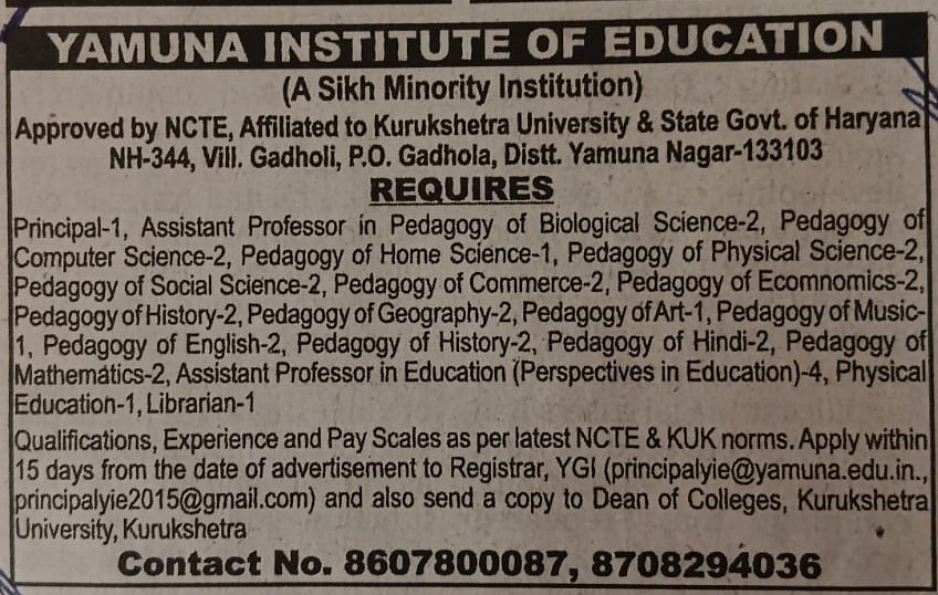 I, Dr. Ravinder Singh, Principal of Yamuna Institute of Education extend a warm welcome to all of you for earning the professional degree of Bachelor of Education. Our Institute aims to lead the teaching community to work together and enhance the standard of teaching for preparing dedicated teachers. It will certainly help to uplift our society and overcome different types of problems that come into life. Another aim of our institution is to create a safe & nurturing environment for developing the wholesome personality of students. Still, the challenging aim of the institute is to develop the feeling of cooperation and respect for society’s value system.